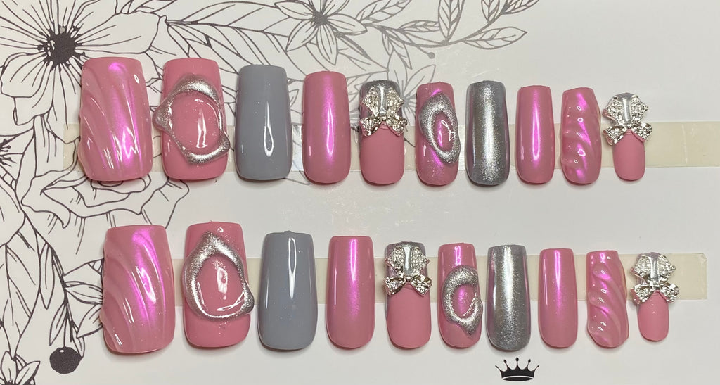 - 20 Hand-Painted Press on nails (10 various sizes)